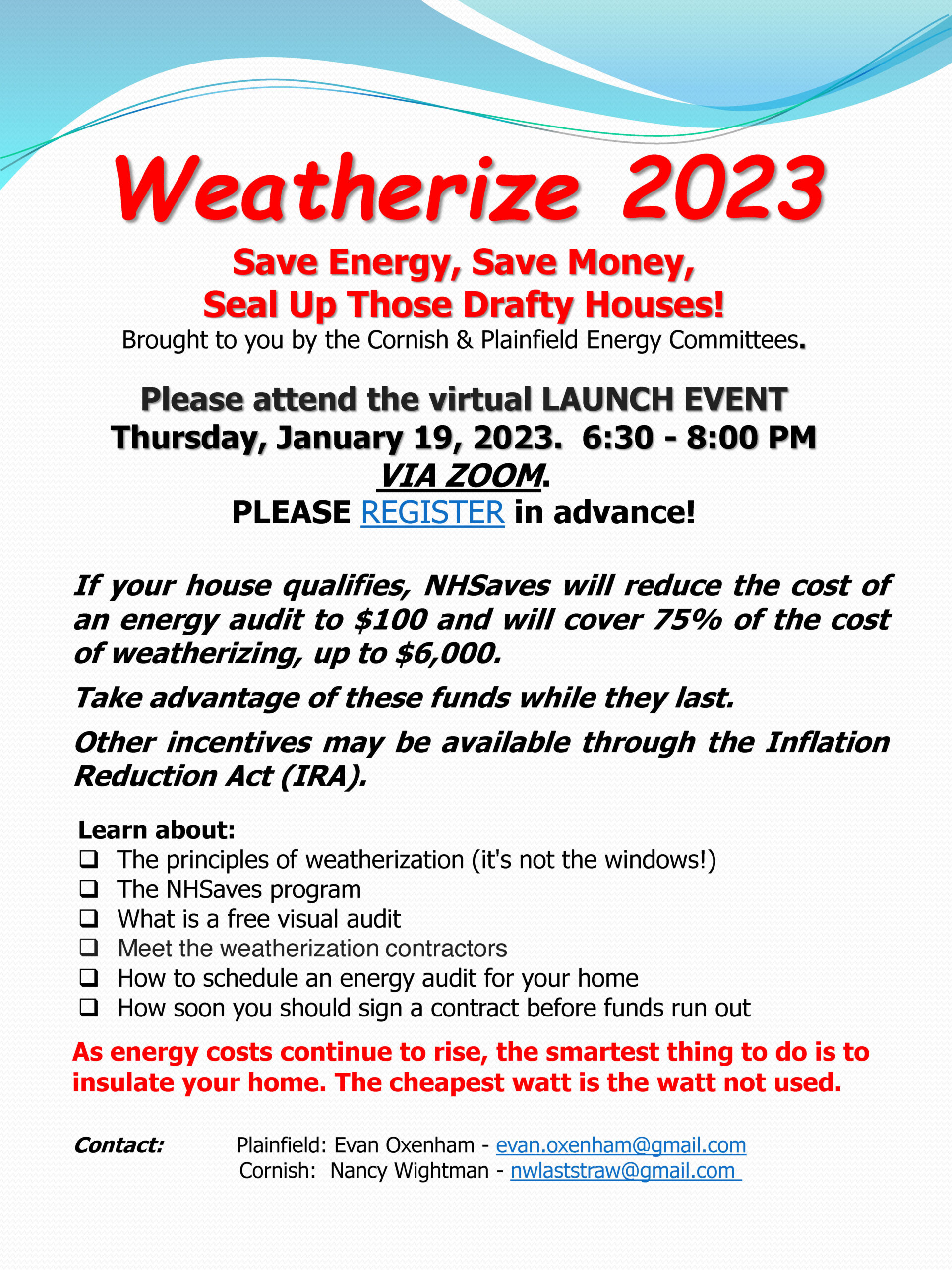 Weatherize 2023—Plainfield and Cornish